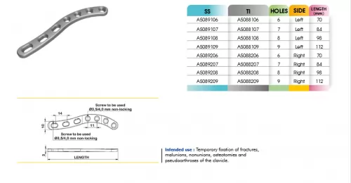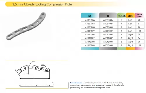 • Stabilitas Maksimal: Teknologi locking plate memberikan fiksasi optimal pada fraktur klavikula, mengurangi risiko pergeseran tulang.