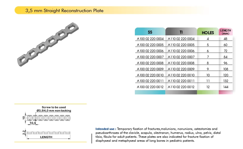 Jual 3,5 mm Straight Reconstruction Plate untuk dokter ortopedi. Material premium, fiksasi kuat, harga terbaik! Hubungi kami sekarang.