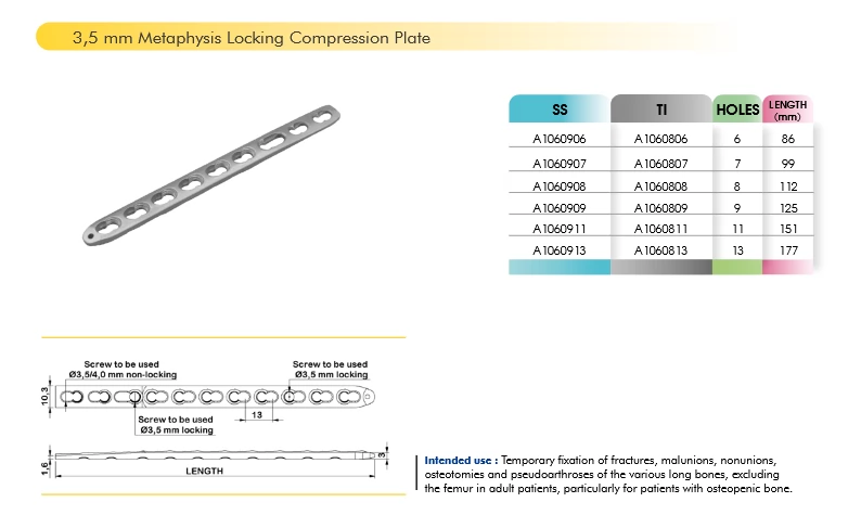 • Nama Produk: 3,5 mm Metaphysis Locking Compression Plate